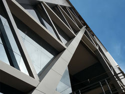 “El diseño contempla en su composición elementos propios de la Ingeniería Civil, (Pórticos, puentes, estéreo estructuras, etc.) Los cuales se van reflejando en cada uno de sus bloques mediante el uso de un módulo triangular equilátero, La eficiencia de esta geometría en la solución de la fachada permite alcanzar una atractiva rigidez.